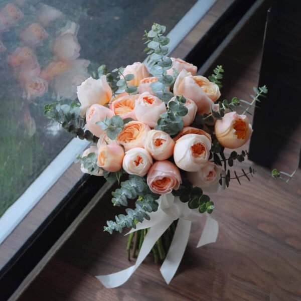 Bó hoa cưới Hồng Juliet mix lá Bạc là một sản phẩm độc đáo và lãng mạn cho ngày cưới của bạn.